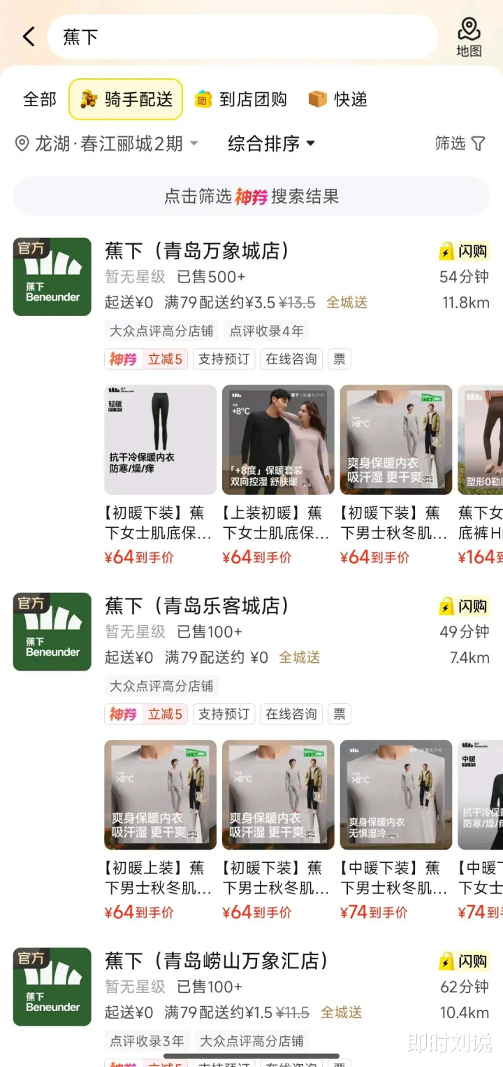 12月1日,蕉内通过官方公众号宣布正式入驻美团闪购,12月3日起,除苏州、西安、无锡、深圳、重庆部分门店外,全国有蕉内线下门店的城市,消费者均可通过美团闪购线上下单并享受即时配送服务。蕉内相关工作人员向时代财经回应称,此次上线美团闪购是拓展服务场景的一次尝试,给消费者多一种购物选择。